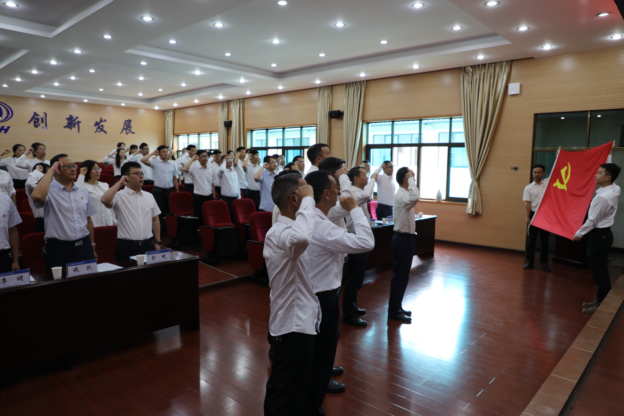 會議在莊嚴(yán)的國歌聲中拉開帷幕。董學(xué)友帶領(lǐng)全體黨員干部職工重溫入黨誓詞,并向受到表彰的先進集體和優(yōu)秀個人表示崇高的敬意和熱烈的祝賀,向辛勤奮戰(zhàn)在工作崗位上的廣大共產(chǎn)黨員致以衷心的感謝和節(jié)日的問候。