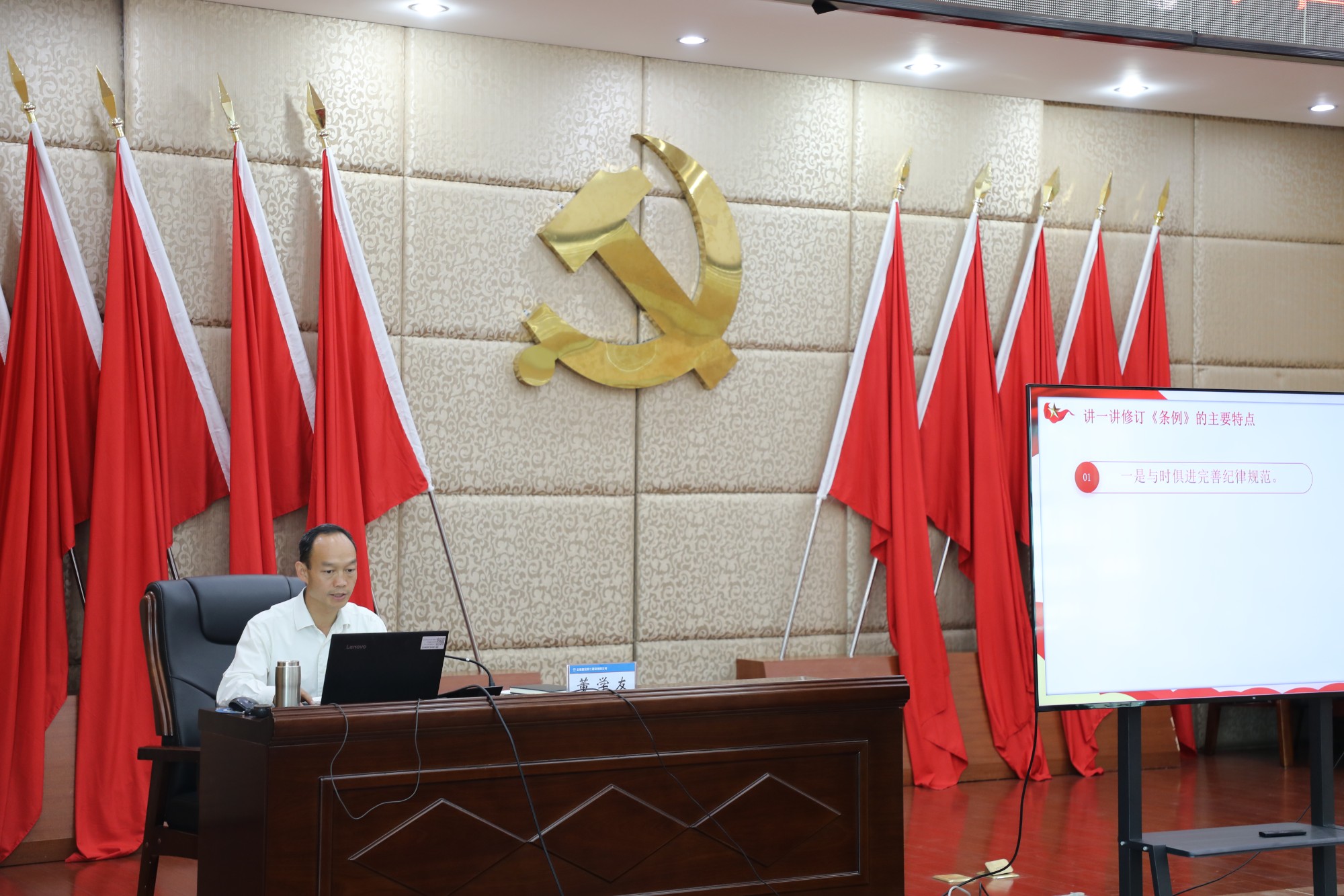 專題黨課中,董學(xué)友圍繞《中國共產(chǎn)黨紀(jì)律處分條例》(以下簡稱《條例》)修訂的主要特點、修訂內(nèi)容、貫徹要求三個維度,對《條例》呈現(xiàn)出來的政治性、科學(xué)性、系統(tǒng)性和全面性等鮮明特點進(jìn)行闡述,并結(jié)合公司實際與典型案例對《條例》修訂內(nèi)容進(jìn)行逐條解讀,為大家上了一堂生動的紀(jì)律黨課。