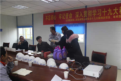 公司黨委工作部相關人員解讀黨的十九大報告并開展黨的十九大相關知識問答活動,給搶答正確的員工送上小獎品。黨員李俊馳拿到的獎品最多,他說:“我在廠里面工作的同時,也關注和學習黨的十九大精神,提的問題我很多都會,黨的十九大跟我們的工作生活息息相關,作為黨員,我們要發(fā)揮好先鋒模范帶頭作用,把學習好宣傳好黨的十九大精神引向深入到我們周圍”。