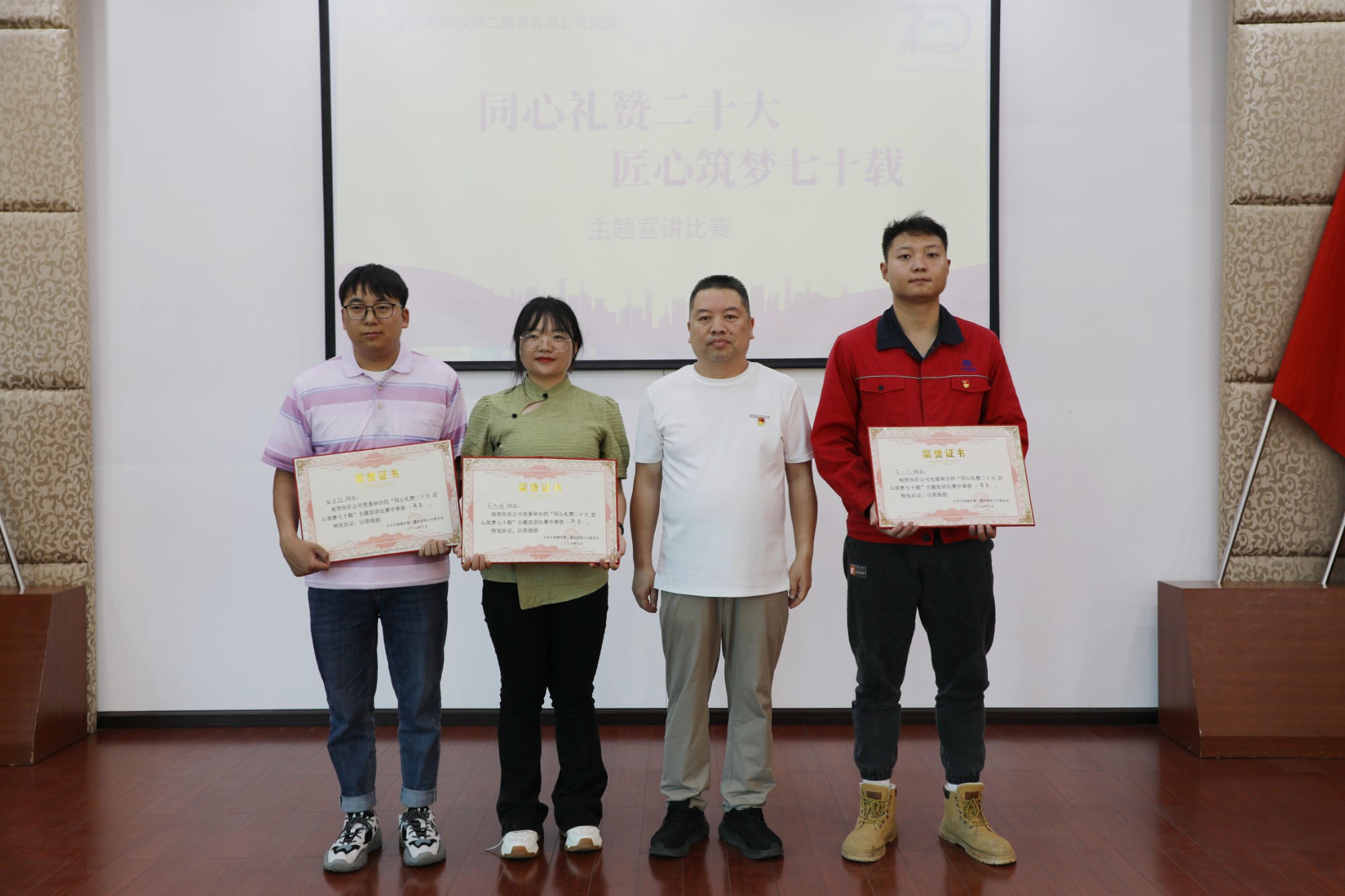 5月8日下午,由公司黨委主辦,工會(huì)、團(tuán)委協(xié)辦的“同心禮贊二十大 匠心筑夢(mèng)七十載”主題宣講比賽在二樓會(huì)議室舉辦。公司黨委副書記、董事長(zhǎng)陳定華,公司領(lǐng)導(dǎo)孫明書,黨委委員、總經(jīng)濟(jì)師陰明珉,黨委委員、工會(huì)主席胡云紅,黨委委員、財(cái)務(wù)總監(jiān)代映華出席活動(dòng)并擔(dān)任評(píng)委。
