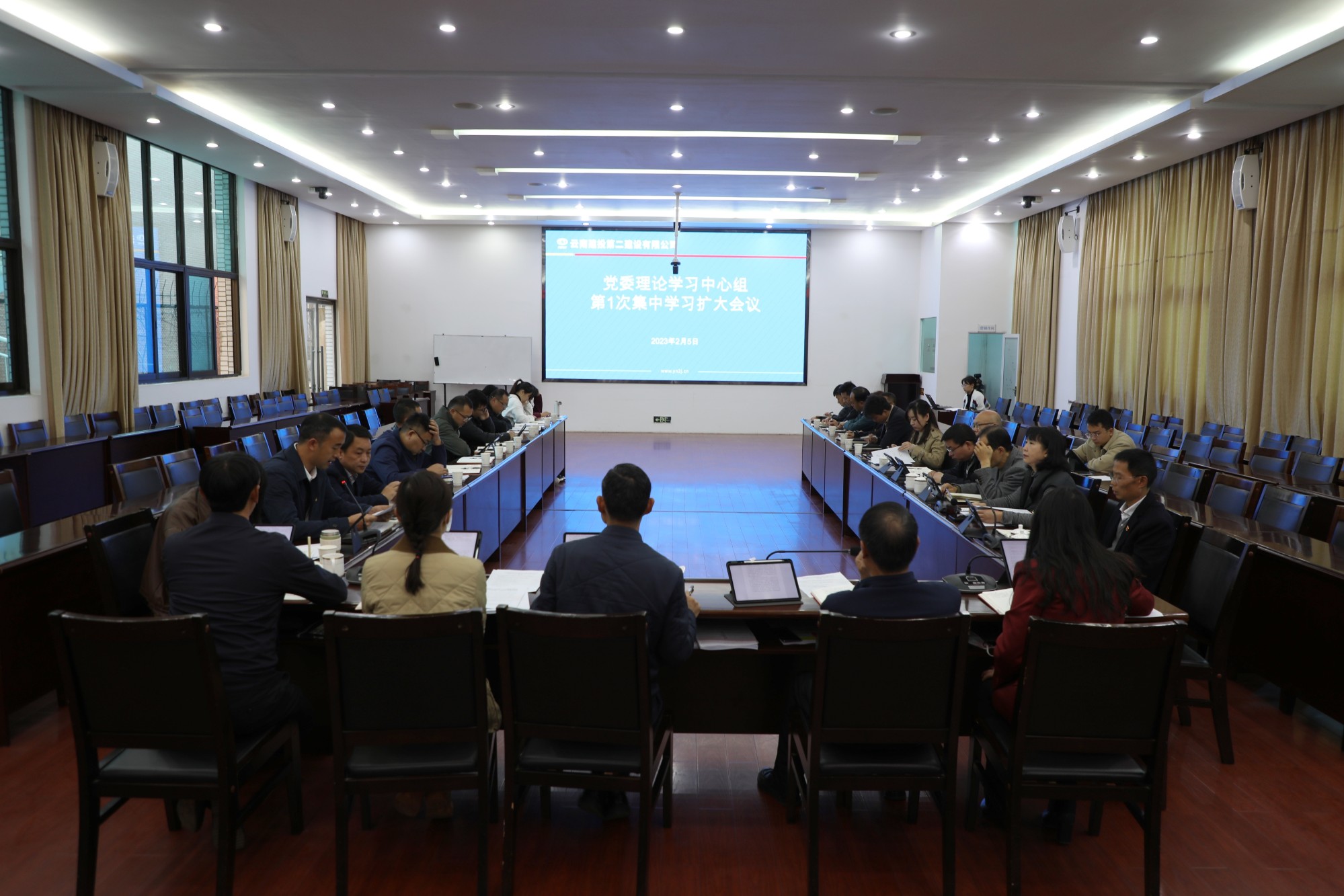 2月5日上午,公司黨委召開2023年理論中心組第1次集中學習擴大會議,公司領導班子、擴大班子成員,職能部門負責人參加會議,會議由公司黨委副書記、董事長陳定華主持。